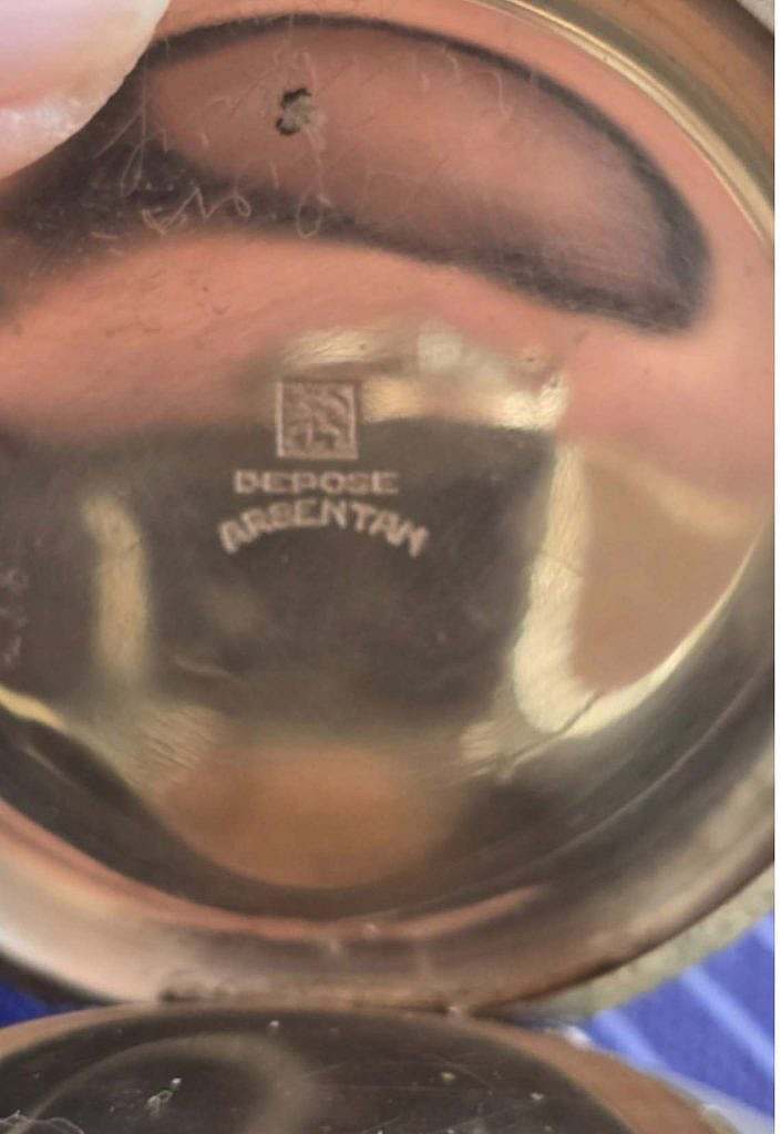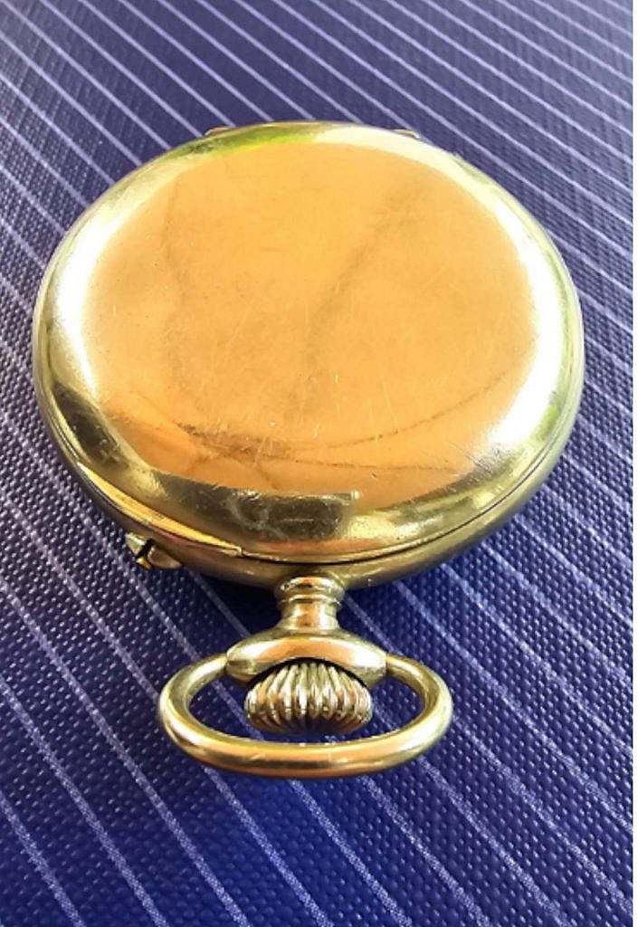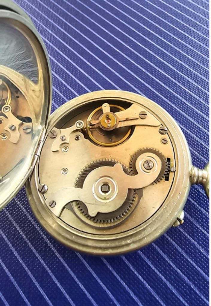 Reloj de bolsillo de estilo lepine en níquel y cromo con el colgante la anilla de suspensión y la corona ranurada alas XII, así como en su carrura el pulsador para el cambio horario a las 11.