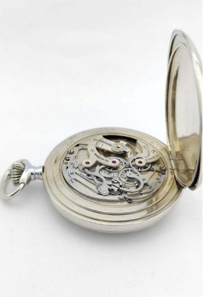 El reloj objeto de esta catalogación es de estilo lepine en acero, con sistema de cuerda y cambió horario por la corona. Dispone de anilla de suspensión, colgante, pulsador y corona ranurada redonda a las XII horas.