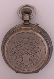 Reloj de bolsillo de la marca Favory Geneve, con tapas saboneta en plata de ley profusamente grabadas con motivos vegetales y florales  y diversas filigranas.