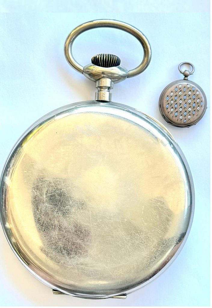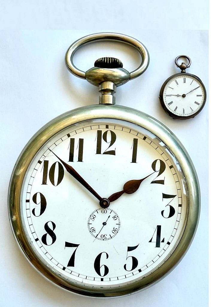 Reloj de bolsillo 8 días cuerda, estilo lepine, marca Eterna, tamaño Goliat muy inusual, de 14 centímetros de diámetro, con un peso de casi un kilo.
