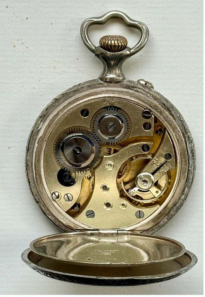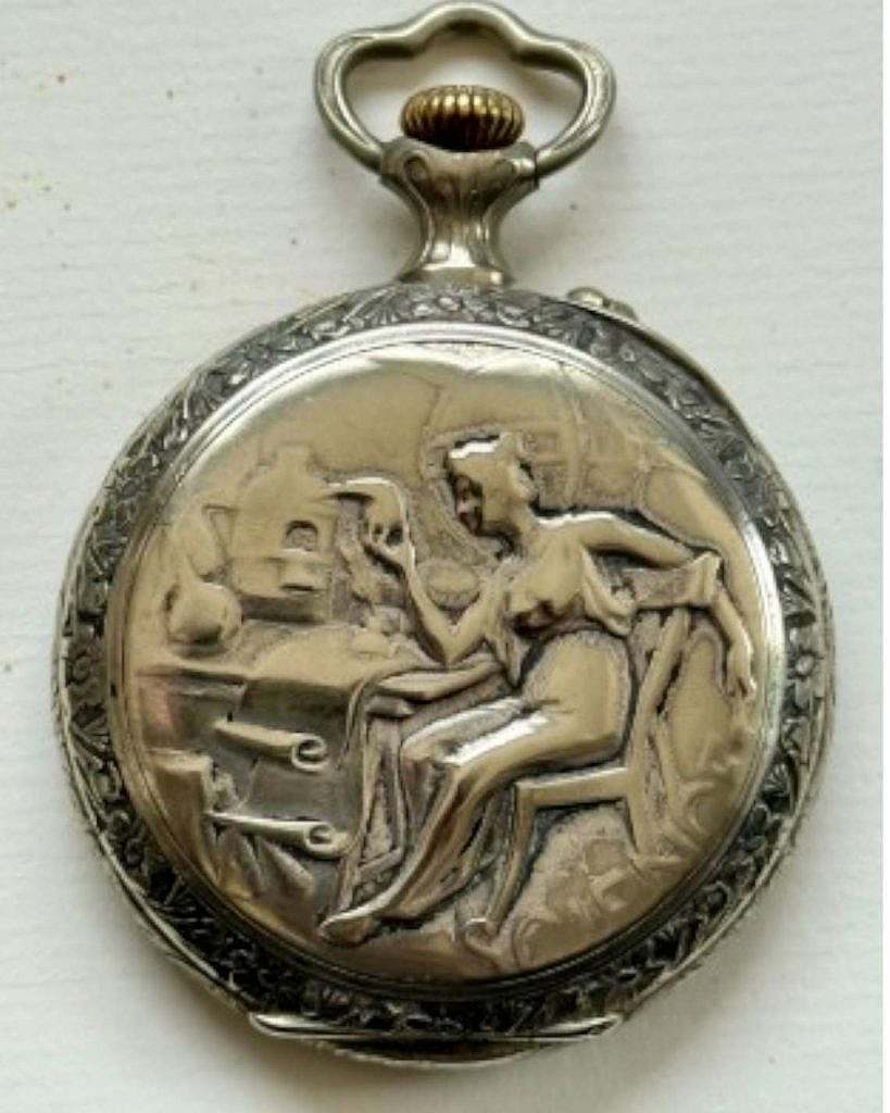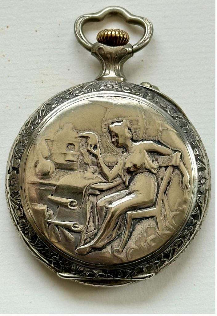 Reloj de bolsillo Alfred Magnin, homenaje a través del repujado de la tapa posterior a Marie Lavoisier, figura fundamental de la historia de la ciencia y considerada con pleno rigor historiográfico, como la madre de la química moderna.
