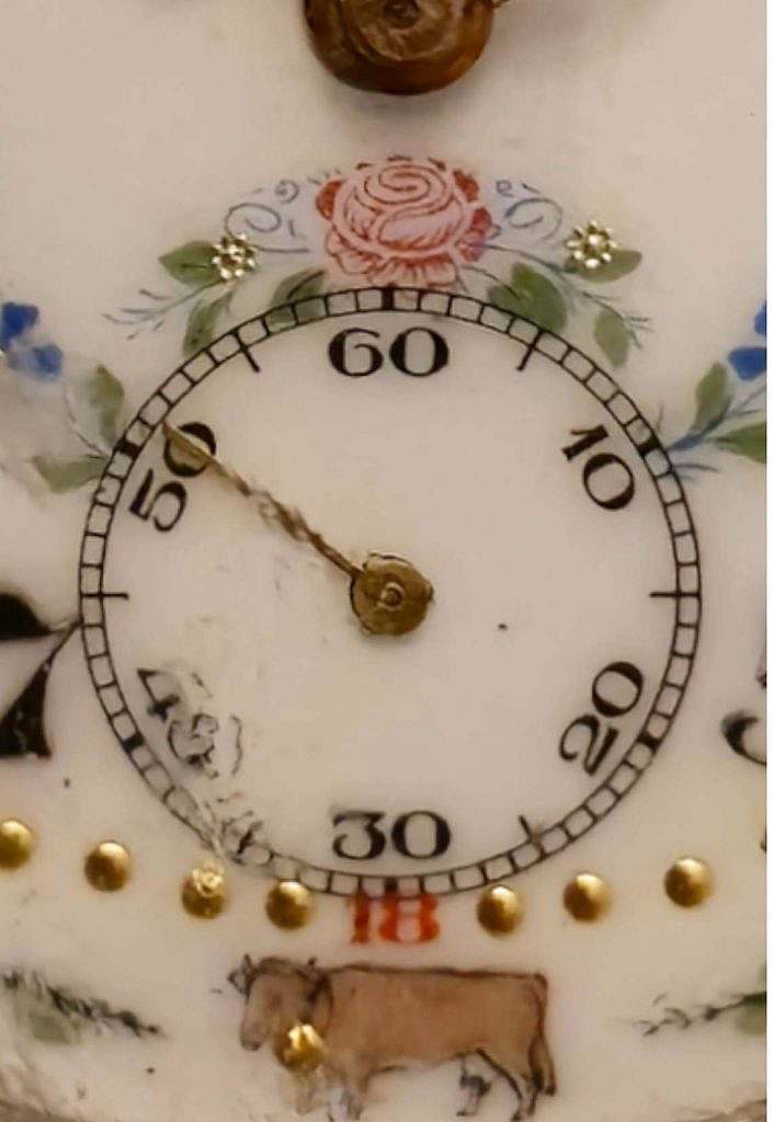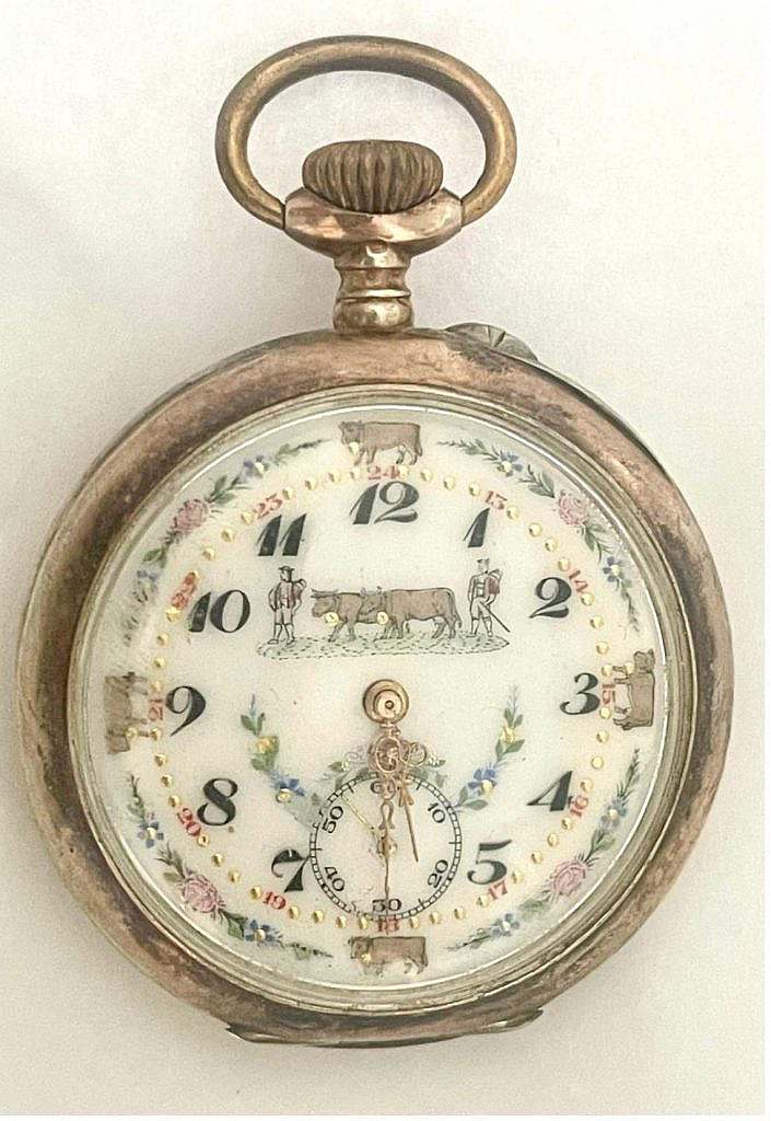 Reloj campestre Suizo anónimo del año 1895 si bien se produjo hasta los años 1960 el cual se adquiría como souvenir. Este tiene de especial que es de los primeros que se produjo.