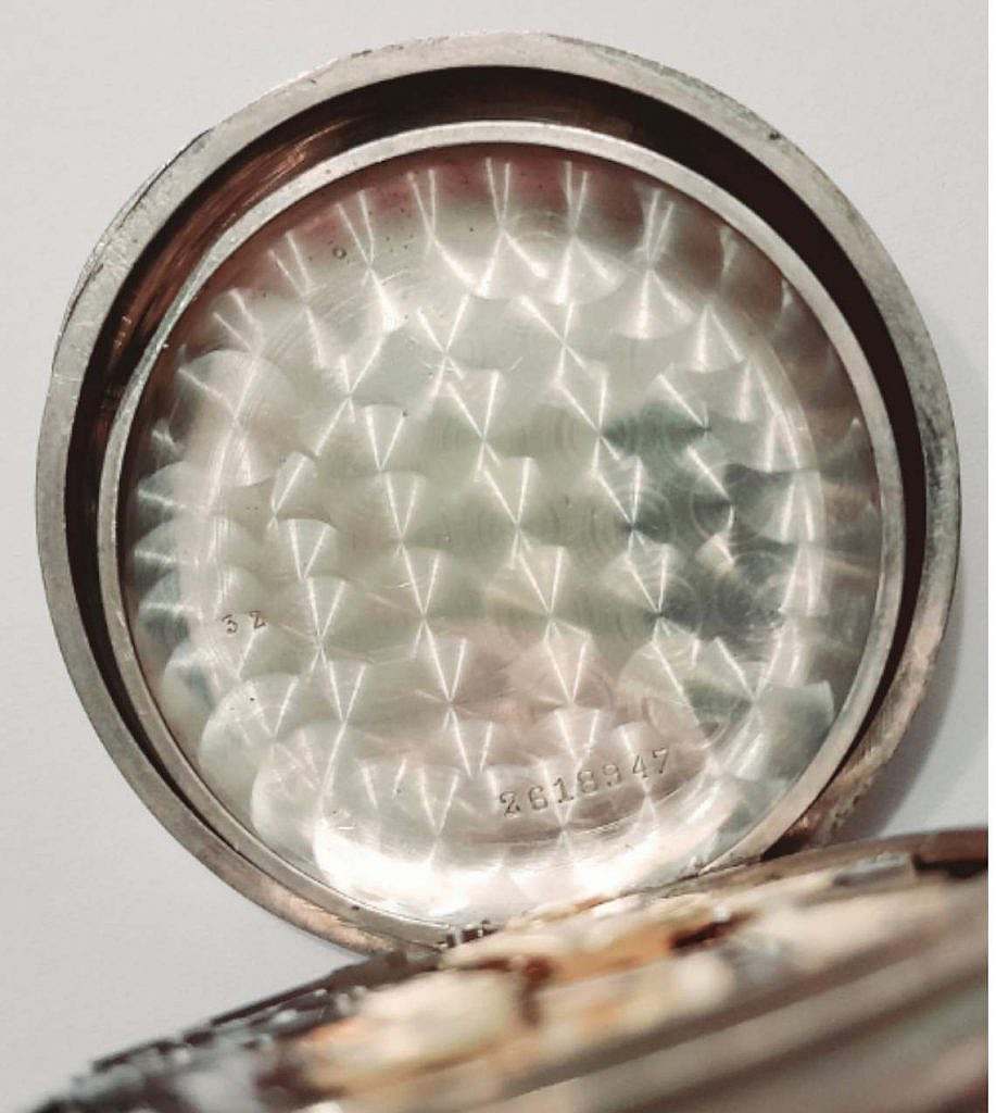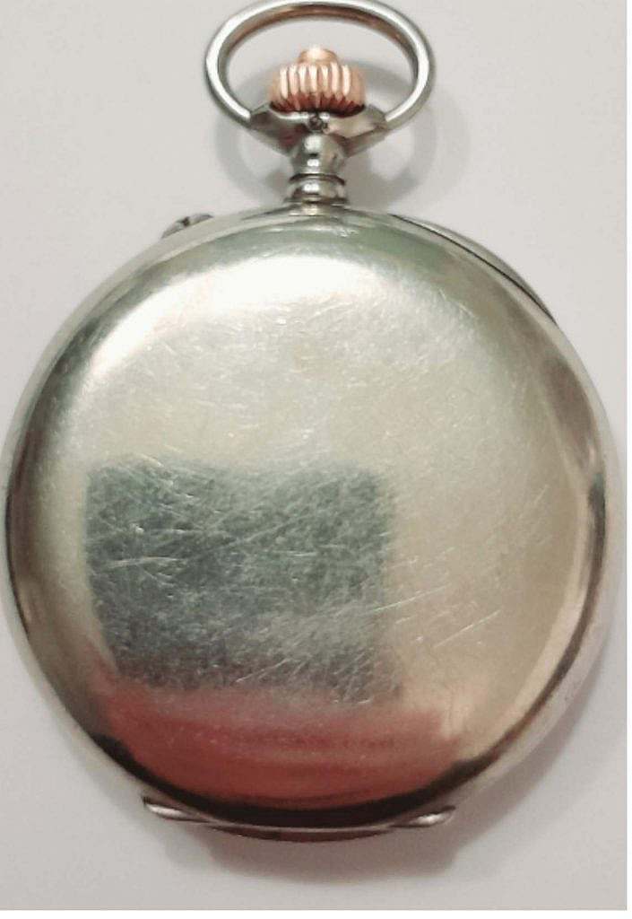 Reloj de bolsillo cronómetro de 30 minutos del maestro relojero August Ericsson, un cronómetro es un dispositivo que se utiliza para medir el tiempo con precisión. Se usa comúnmente para realizar mediciones de tiempo en deportes, actividades físicas, experimentos científicos, entrenamientos y en diversas aplicaciones industriales. Los cronómetros suelen tener funciones de contar hacia adelante (cronometraje) o hacia atrás (temporizador), y pueden medir fracciones de segundo, segundos, minutos y horas, dependiendo de su precisión y configuración. Caja en níquel y cromo lisa en la que se ha grabado en la placa de características el nombre del maestro relojero August Ericsson con el número de serie 2.618.947. La esfera es en esmalte blanco sobre cobre convexo y en la indicación horaria de las 12 se ha dispuesto de un contador cronómetro de hasta 30 minutos y en la indicación de las 6 un segundero. Las agujas horarias son en latón dorado estilo pica de látigo y la contadora de minutos del cronometro es central y estilo pelo en laton negro. La caja de este reloj tiene un diámetro de 5,5cm.