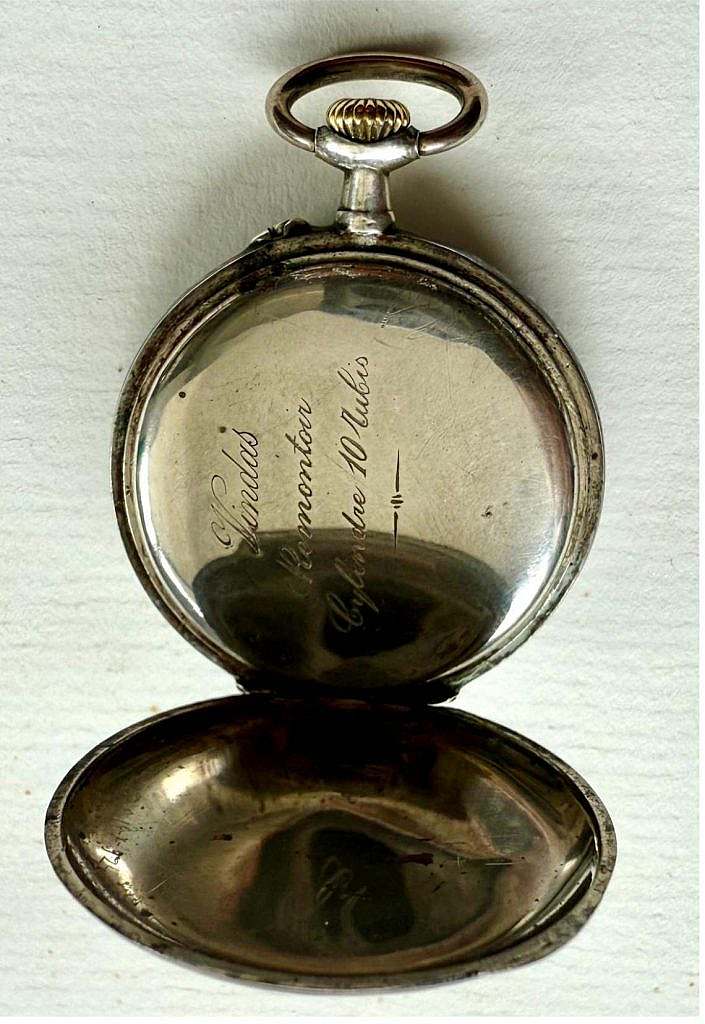 En el interior, el reloj presenta un calibre suizo con escape de cilindro, uno de los sistemas de escape más difundidos en la relojería de gama media durante el siglo XIX. Aunque mecánicamente más sencillo y económico que el escape de áncora, el escape de cilindro se apreciaba en relojes pequeños y finos por permitir movimientos delgados y estéticamente armoniosos. Tu movimiento, de puentes dorados y rueda de corona visible en la parte superior, coincide con la producción industrial suiza de Le Locle, La Chaux-de-Fonds y Saint-Imier, donde numerosos ébauche makers fabricaban mecanismos para ser exportados a toda Europa y marcados posteriormente con el nombre del comerciante final, en este caso Vindas.
