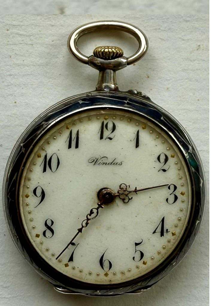 El reloj de dama de la marca Vindas pertenece a un grupo de piezas fabricadas en Suiza entre finales del siglo XIX y primera década del XX, destinadas a joyerías y relojerías minoristas que comercializaban relojes bajo su propia marca. El apellido Vindas corresponde a una familia de comerciantes y relojeros establecidos en distintas ciudades europeas (especialmente en Francia y España), que importaban movimientos suizos terminados o semi-terminados para ensamblarlos y personalizarlos. La inscripción en esmalte negro VINDAS esmaltada en la indicación horaria de las XII y visible en las fotografías confirma esta práctica habitual: indica el nombre del comerciante y el destino de la pieza, y no de un fabricante de calibres.