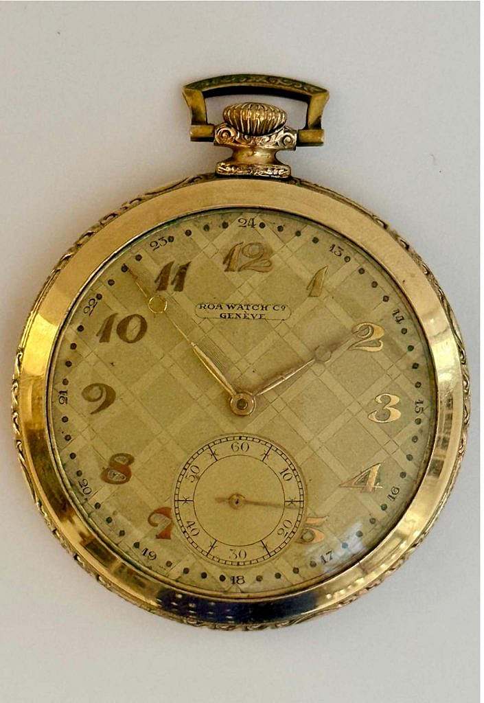 Reloj de bolsillo de estilo Art-deco de la marca Roa Watch Company, Geneve.