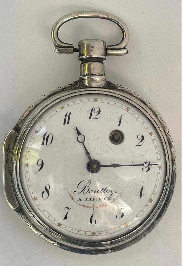 Reloj de bolsillo en plata de ley catalino del maestro relojero Bouttery a Lisieux.