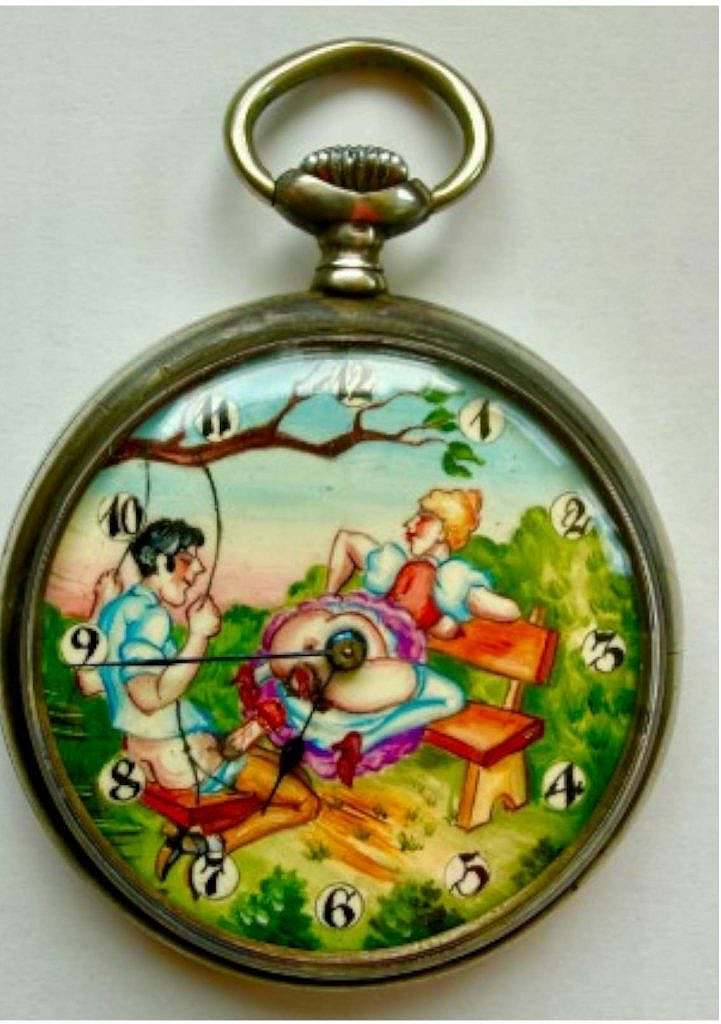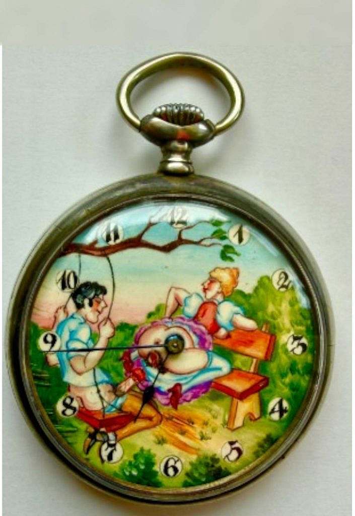 Durante este periodo, numerosas manufacturas producían calibres en serie que posteriormente podían adaptarse a distintos acabados, cajas y esferas según el mercado de destino. Las escenas eróticas, generalmente esmaltadas a mano sobre placa metálica, eran obra de artistas especializados, muchos de ellos establecidos en Ginebra o en La Chaux-de-Fonds. Estos talleres ofrecían repertorios iconográficos galantes, humorísticos o abiertamente libertinos que se montaban sobre relojes destinados a una clientela adulta y privada. La temática no era pública ni institucional; se trataba de objetos íntimos, adquiridos como regalo personal, pieza de conversación o curiosidad técnica.