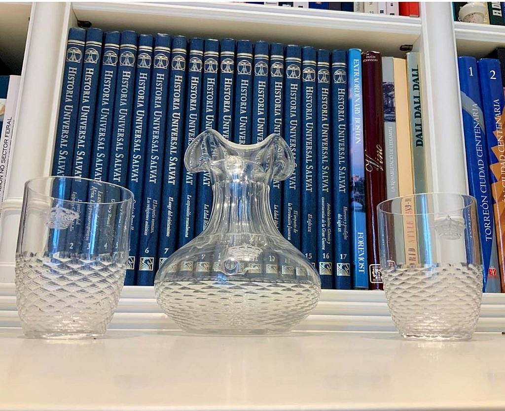 Doña Rosa Ibáñez en los años 1970-80 fue secretaria del Excelentísimo Sr. Doctor Don José Luis Barquero en su despacho de Barcelona situado en la céntrica Plaza Urquinaona. Al no tener descendientes Rosa y heredar de su tío en los años 1950 (su tío fue uno de los notarios de Alfonso XIII) este conjunto de cristal tallado que aparece en las fotos de una jarra y dos vasos con el escudo de Alfonso XIII profusamente grabados decidió con mucha ilusión regalarlos a su jefe, el Dr Barquero. Otro de los objetos que heredó fue este reloj (que no heredó el Dr. Barquero) y fue regalado a otra persona. Circunstancias de la vida el reloj fue guardado en la caja fuerte del despacho hasta que ella se retiró y se lo llevo. Lo paradójico es que el objeto fue subastado 64 años después en una casa de subastas internacional y adquirido por el director del museo MIARB quien de pequeño lo había tenido en su mano como si el objeto quisiera regresar con el conjunto de la jarra y vasos utilizados por SM el Rey Alfonso XIII. La Historia es muy bonita el Sr. Notario (tío de Rosa Ibáñez) no quiso cobrar una vez más a SM Alfonso XIII, quien era su migo y este le dijo: pídeme algo lo que quieras pues no puedes seguir sin cobrarme y este le pidió algo personal y nada más personal queel propio conjunto de la jarra, vasos y reloj de su mesita de noche.