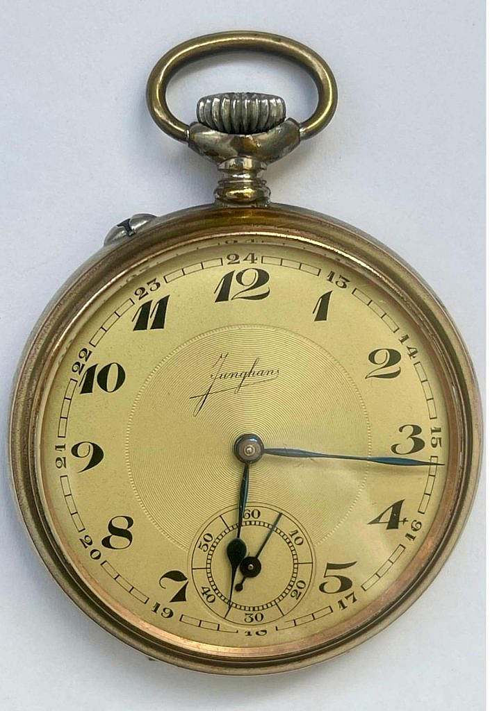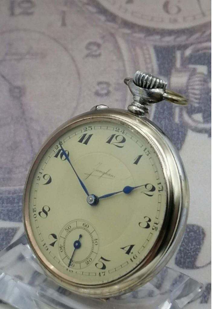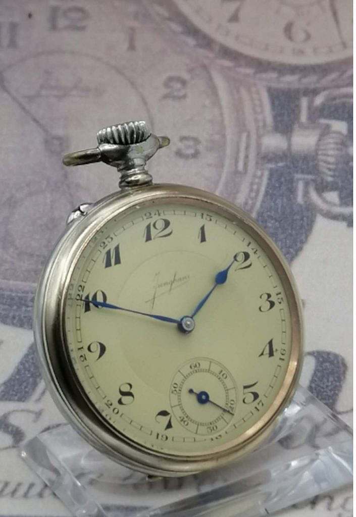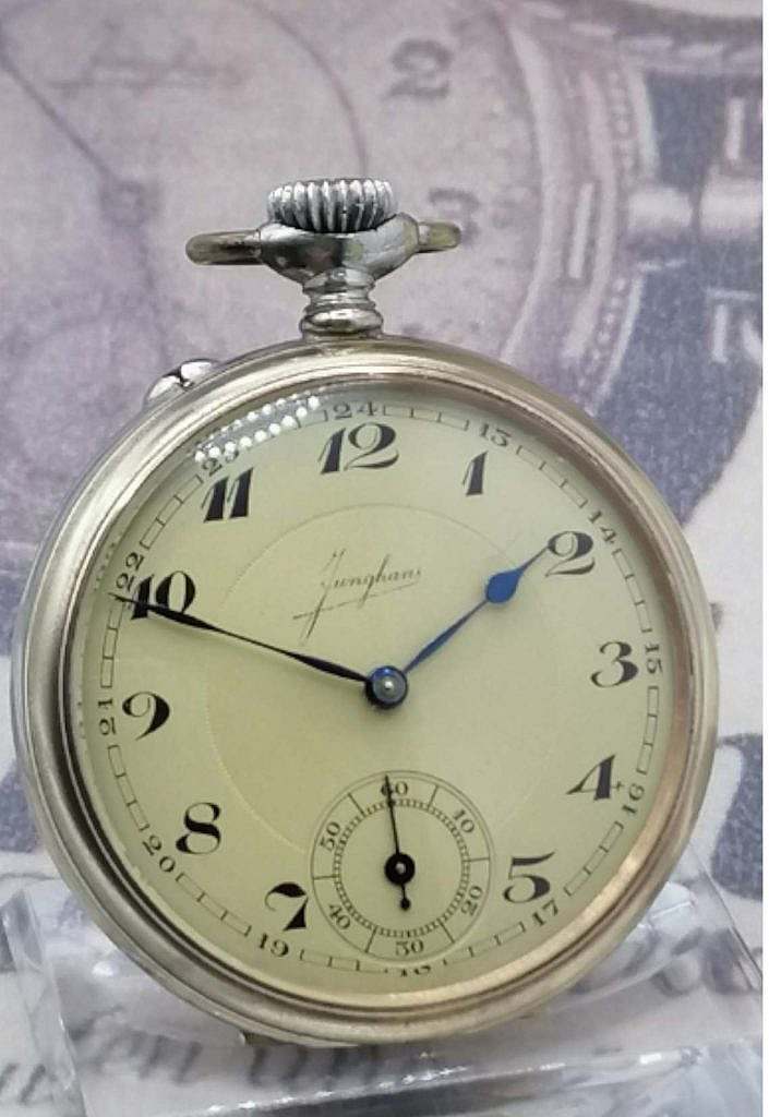 Reloj de bolsillo Junghans kal. 38.a con caja en níquel y cromo de estilo modernista.