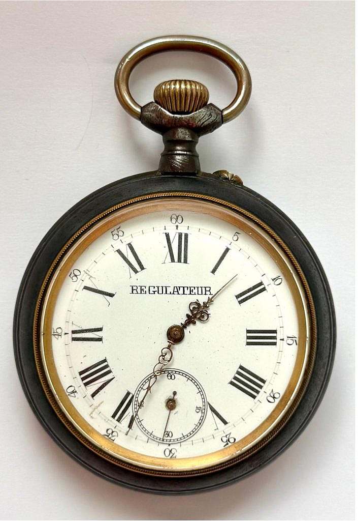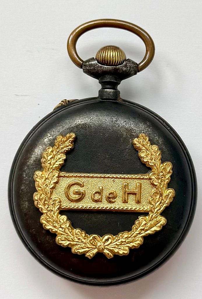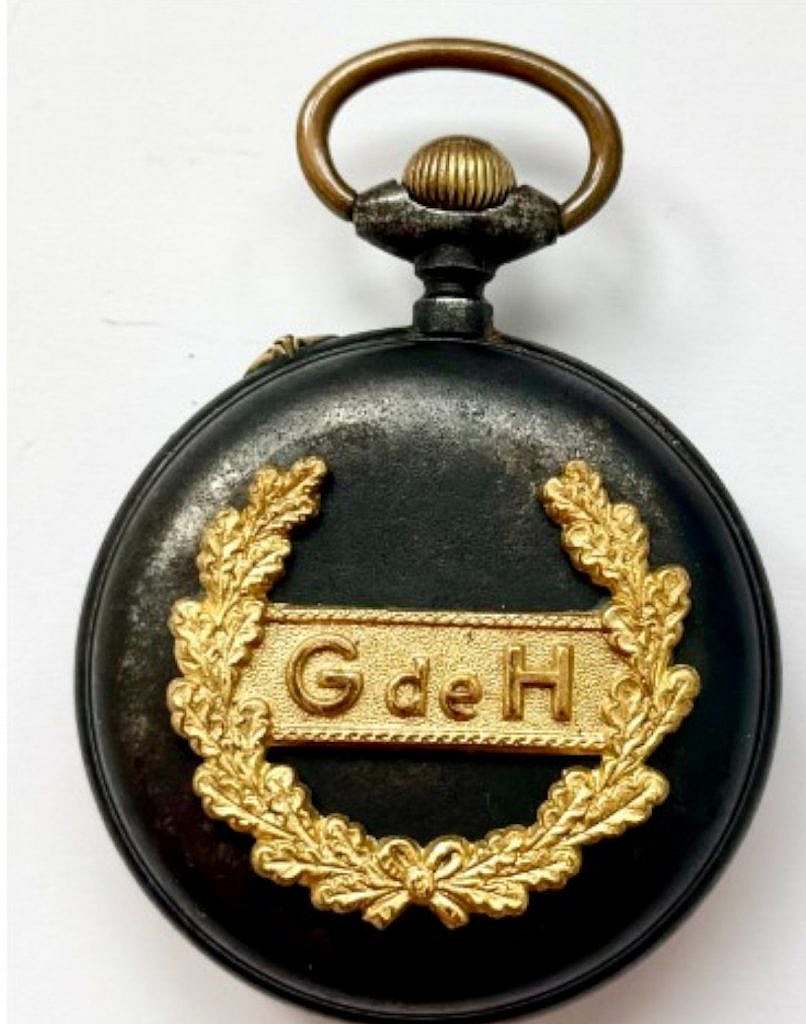 Reloj de Bolsillo  “ La vigilante”. Marca  perteneciente a la manufactura “JAPY FRÈRES & CIE”, Francia, Beaucourt. Encargado por el estado español en la época franquista para la guardia de honor. (Escape a cilindro, 49mm de diámetro).