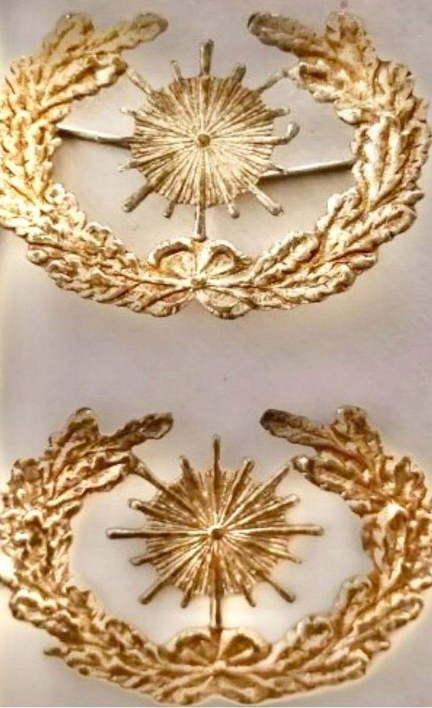 Evolución de las insignias: del laurel de Alfonso XIII a la hoja de roble del Estado español durante el franquismo siendo adoptada por la Guardia de Honor.