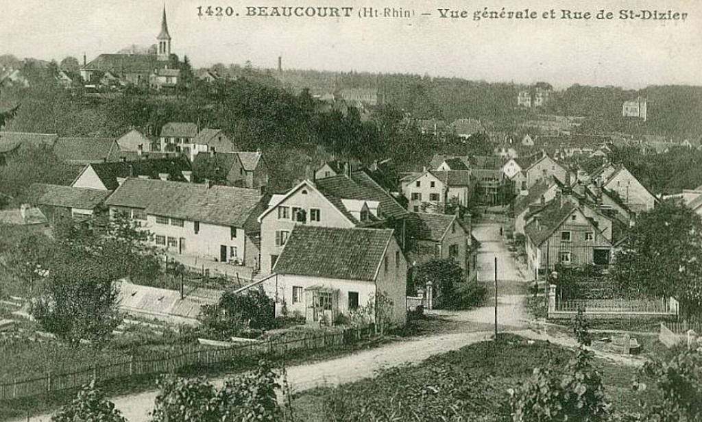 Beaucourt (Haut-Rhin), vista general y Rue de Saint-Dizier, ca. 1900