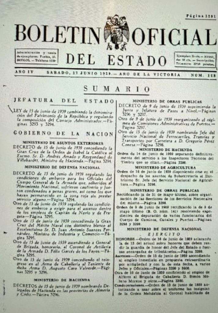 (13 de febrero de 1939 – disposición publicada en el BOE.)