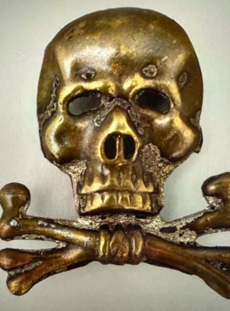 La insignia del Totenkopf, la calavera con tibias cruzadas.
