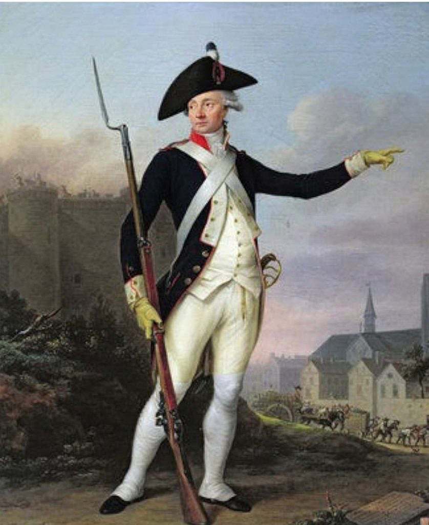 La Guardia Nacional adoptó rápidamente los colores revolucionarios: azul, blanco y rojo, que más tarde se convirtieron en los colores de la bandera nacional francesa. Estos colores representaban la unión del pueblo (azul y rojo, los colores de París) con la monarquía (blanco, el color tradicional de la Casa de Borbón). El negro se podía asociar al luto por los compañeros muertos en acto de servicio.