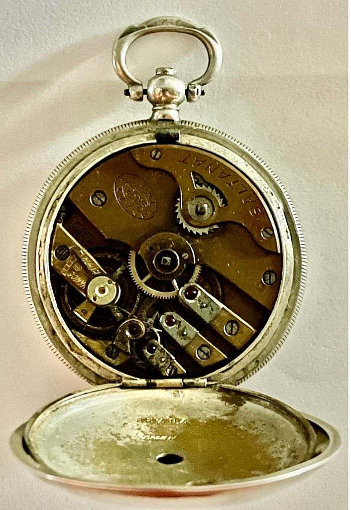 Reloj de bolsillo Saboneta a llave con caja en plata de ley Otomano del  año 1840  para el sultanato de Abdülmecid I y Califa del Islam (1839–1861). Dispone de una inusual esfera en esmalte blanco sobre cobre convexo con numeración turca y un inusual esmalte azul entre dos círculos concéntricos en el que se alberga la numeración turca en esmalte negro. Dispone de segundero a las VI, la firma del Sultanato en esmalte oro  así como motivos vegetales y florales en esmaltes verdes, rojos y azules. Las agujas son estilo Pica de Látigo en latón azul cobalto.