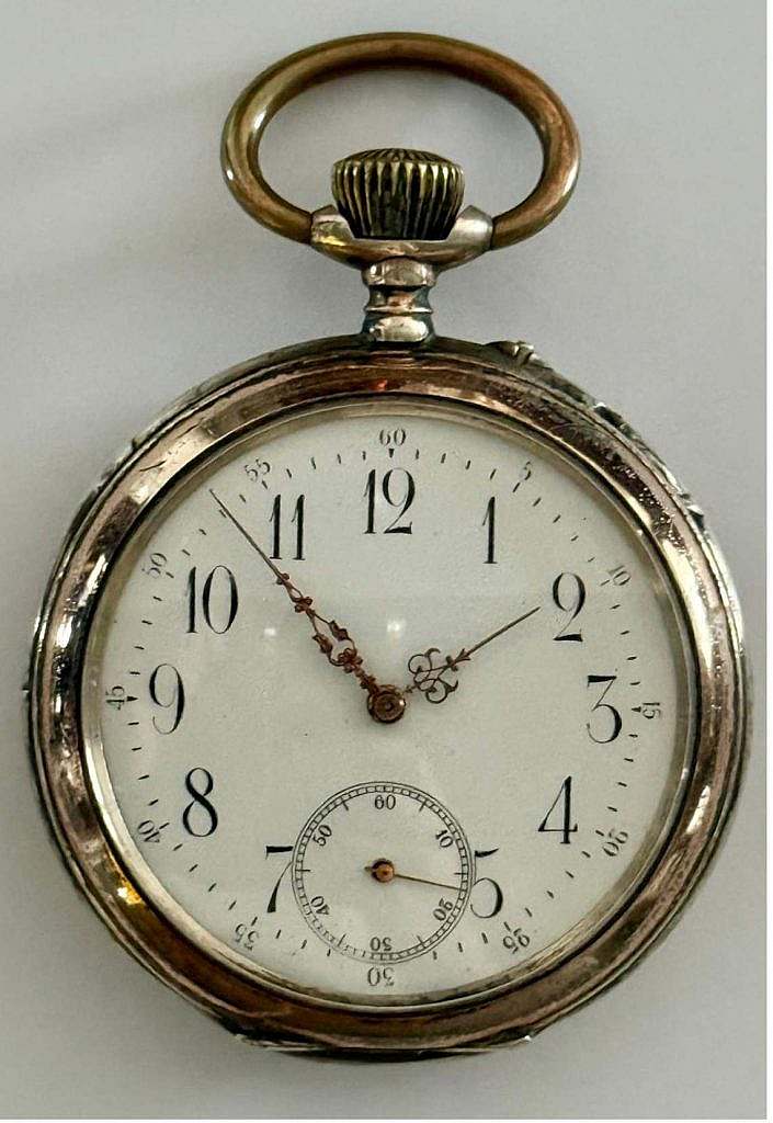 Reloj de bolsillo sueco, con caja lepine en plata de ley, con bisel sobredorado de grandes dimensiones (6,5 cm diámetro) y con el escudo de Armas del Reino de Suecia, utilizado hasta el año 1.905.
