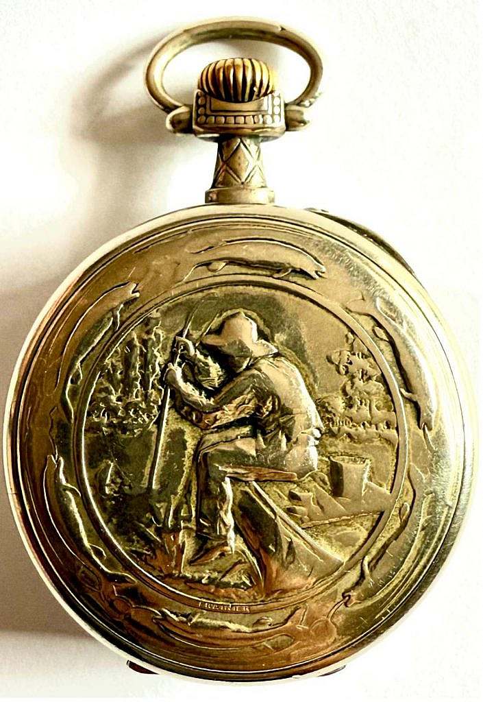 Este reloj es un homenaje a los pescadores de principios del siglo XX en Charquemont, la pesca de río existía y era importante para la vida local, pero no era una «industria» en el sentido moderno del término, sino más bien una práctica artesanal integrada en la subsistencia rural y que convivía con el auge de la actividad relojera en la región comercializando la misma pesca en los mercados. Los pescadores principalmente sacaban de esas aguas: Trucha común, Tímalo común, Lucio, Lucioperca, Perca, Carpa, Salmón (aunque su presencia pudo ser menos habitual en algunos tramos). Sin embargo, este reloj es un justo homenaje a aquellos relojeros que compaginaban la pesca y la relojería y a tal efecto se ha repujado en una bonita escena repujada de un pescador con caña.