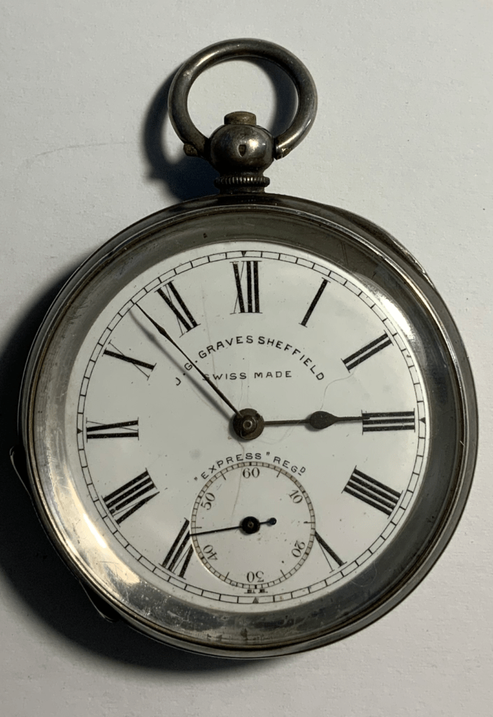 En la esfera se ha esmaltado: “J.G. Graves Sheffield, swiss made, express Reg”.