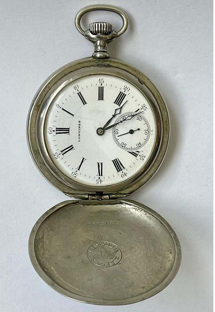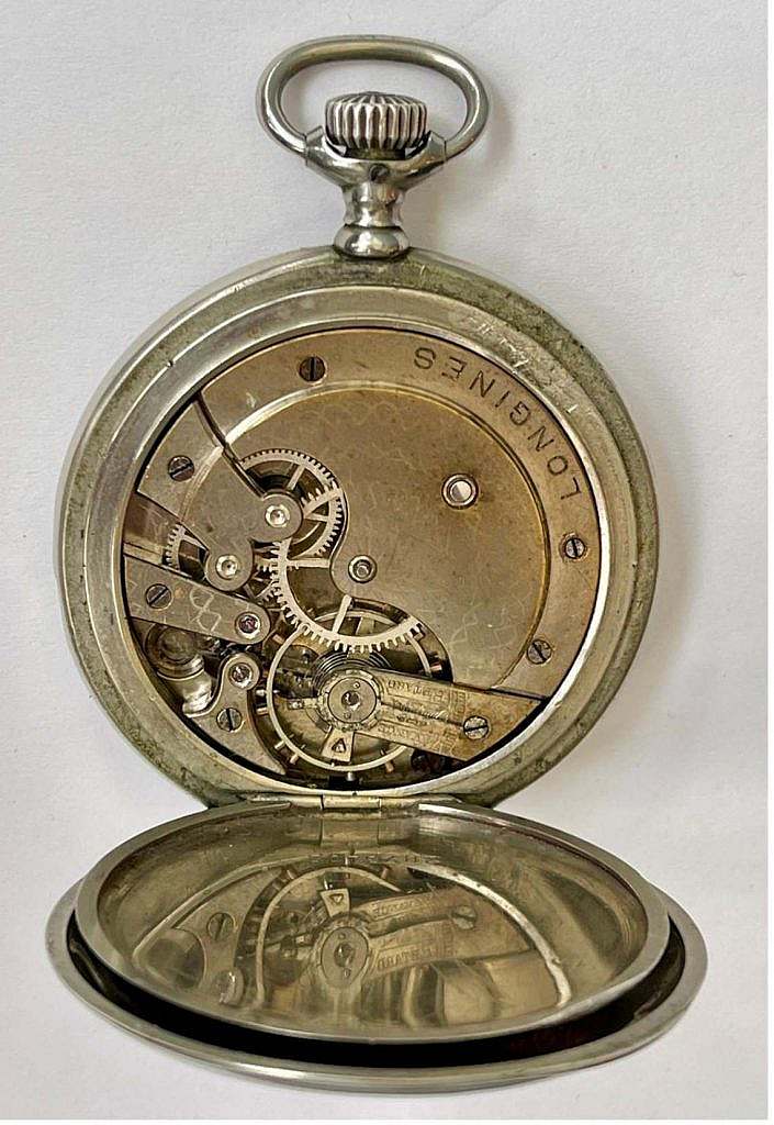 Reloj de la marca Longines de estilo relojero Saboneta con caja en níquel y cromo lisa.