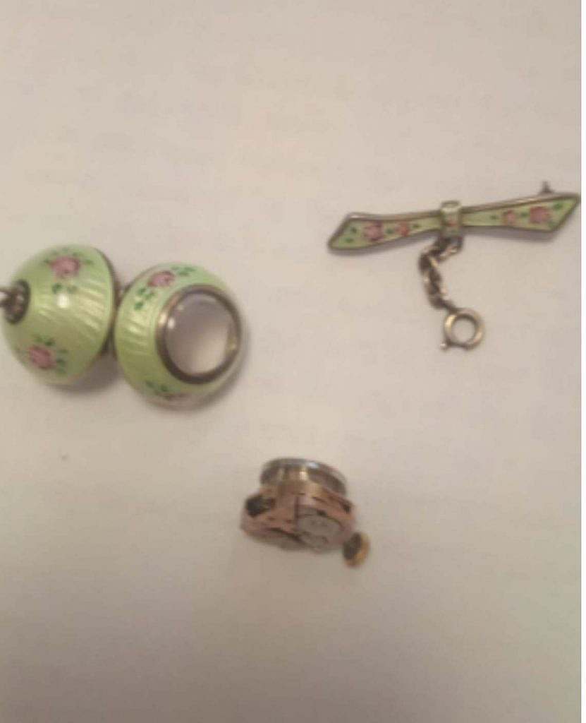 Tanto el broche como la caja del reloj hacen un conjunto muy armonioso y de gran efecto decorativo.