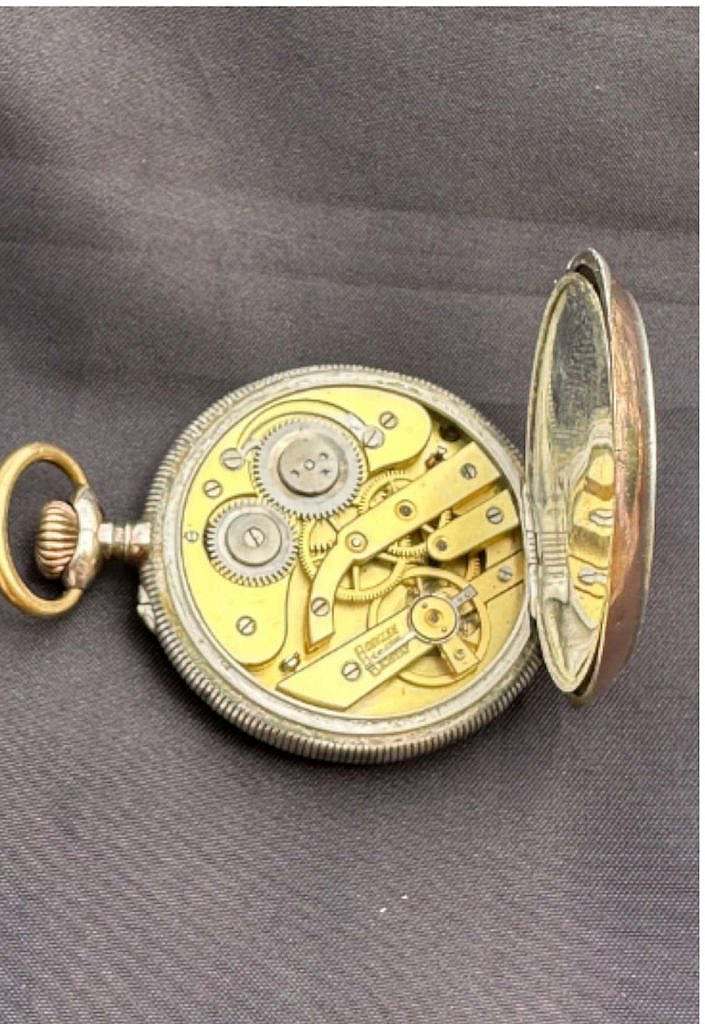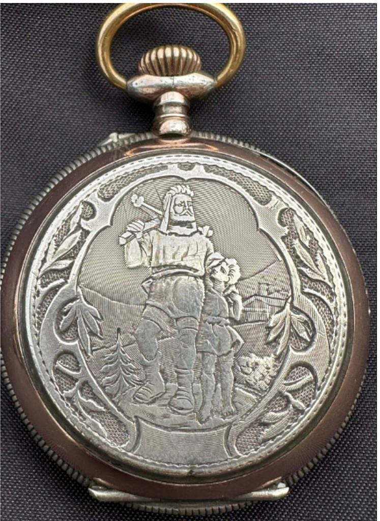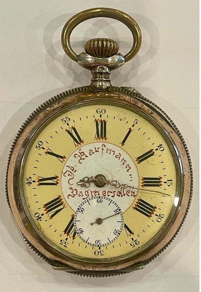 Reloj inusual de bolsillo en plata de ley y oro de la comunidad Suiza de Dagmersellen y personalizado para  J. Kaufmann.