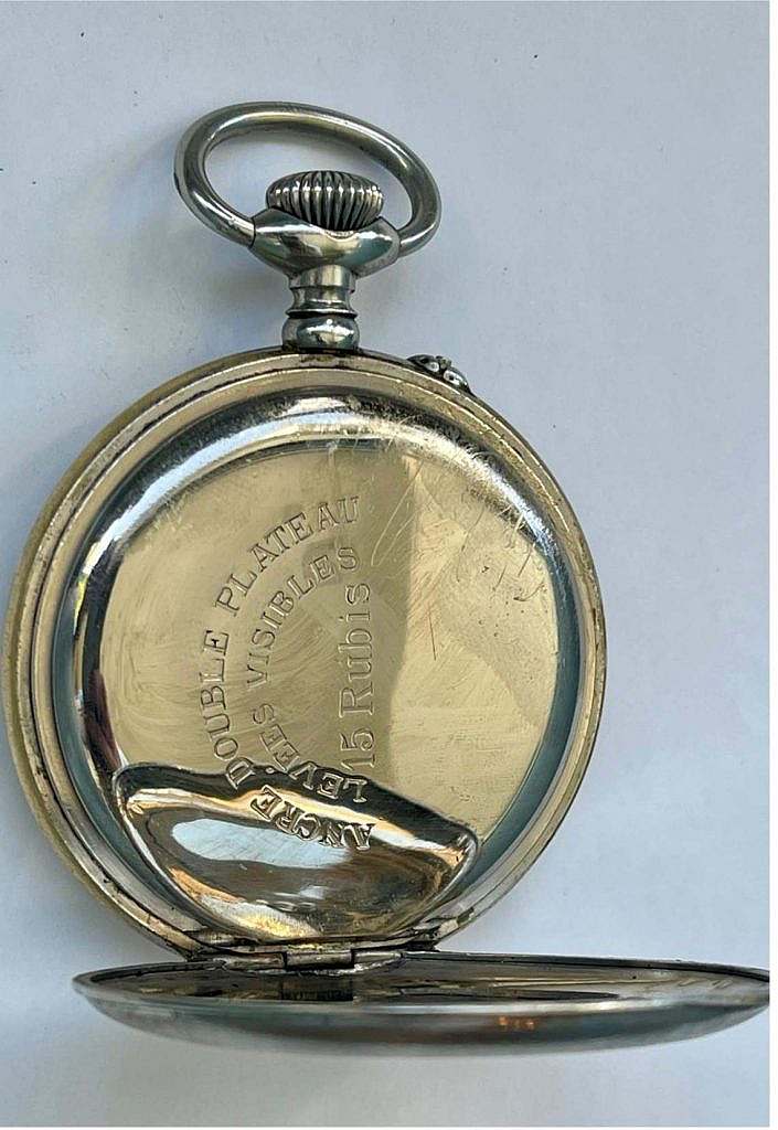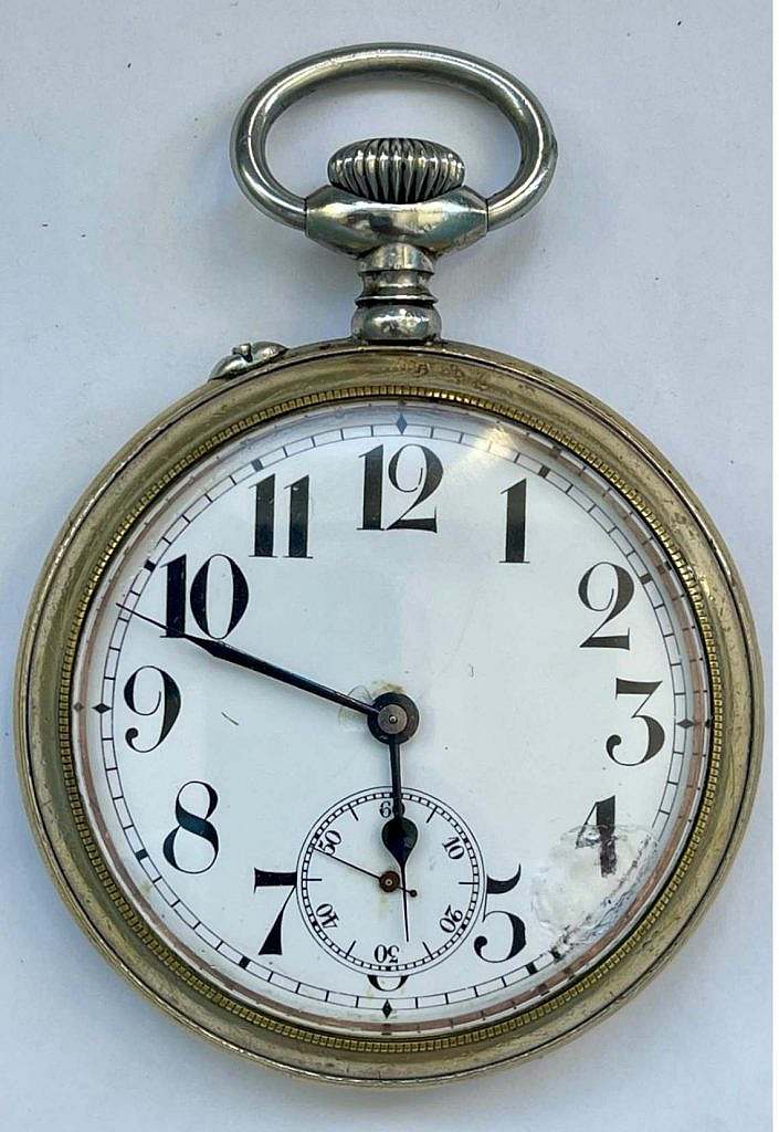 Reloj Inusual lepine en níquel y cromo de grandes dimensiones con 65mm de diámetro y con un peso de 188 gramos. El colgante la anilla de suspensión y la corona ranurada se han dispuesto a las 12. Habiéndose incorporado el pulsador para el cambio horario en la carrura a las 11. Se trata de un reloj de la marca sueca TILLHÖR para la Kungliga Telegrafverket.