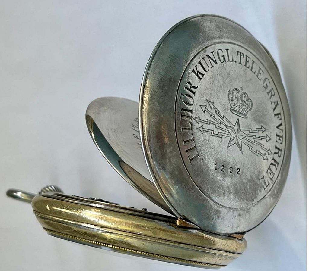 Dada la importancia del tiempo en el trabajo de la Agencia Telegráfica y telefónica se introdujeron unos logos en la tapa posterior de los relojes de los empleados ( altos mandos) grabados profusamente y numerados en este caso corresponde al número 1.292.