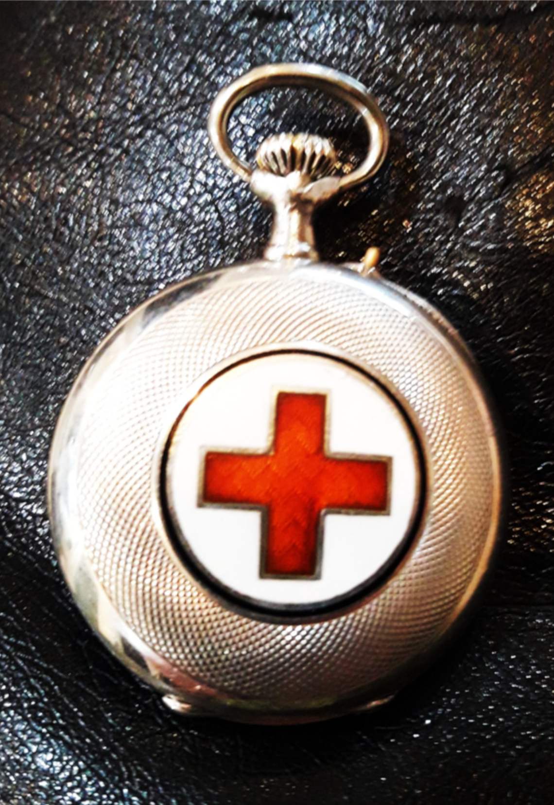 La cruz roja que aparece en la tapa del reloj es el emblema de la Cruz Roja o Cruz Roja Internacional, denominación habitual que recibe el Movimiento Internacional de la Cruz Roja y de la Media Luna, una organización humanitaria de alcance mundial, fundada el 17 de febrero de 1863 por el suizo Henry Dunant.