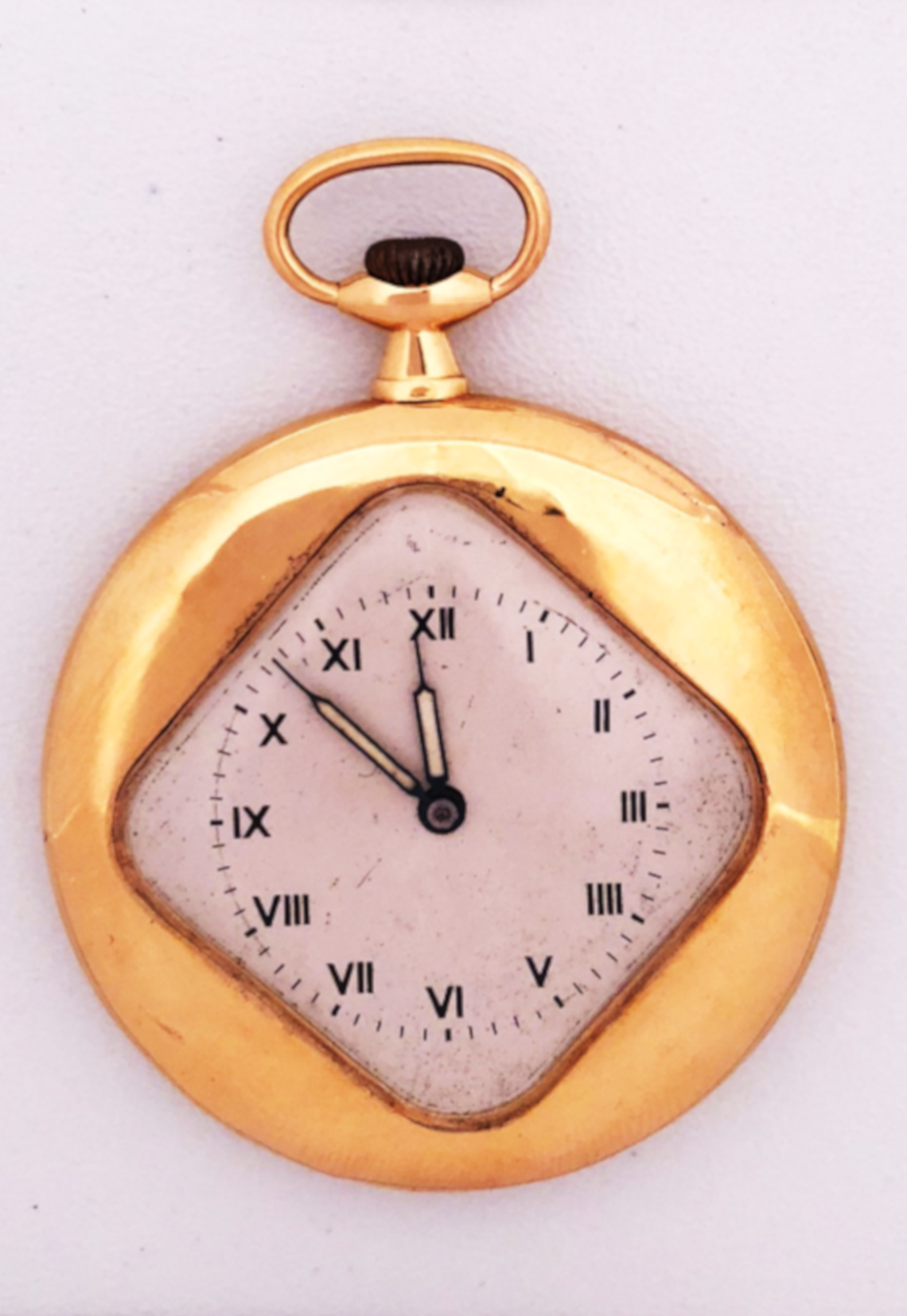 Reloj construido por una manufactura relojera suiza. Se trata de un reloj de bolsillo de estilo Art Déco, en oro de 18 Kl. Su principal función es la indicación horaria.
