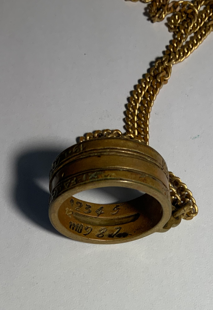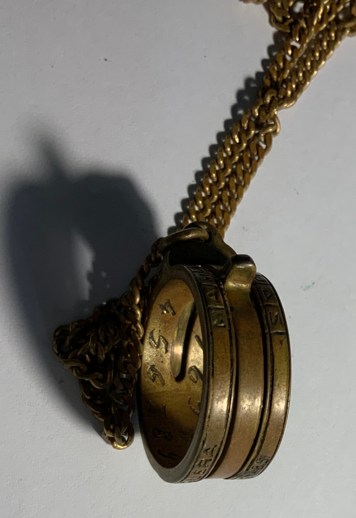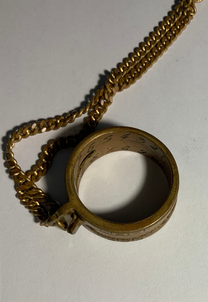 Reloj solar colgante de anillo, en metal dorado, para el linaje de los Falguera.