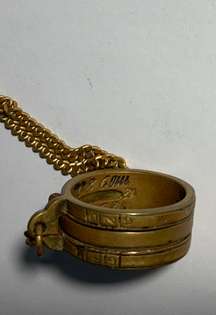 Reloj colgante de anillo solar, en metal dorado. Existe uno de iguales características en el Museo Marítimo Nacional de Londres, pero de otra autoría.